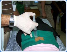 La insuflación rectal se realiza aplicando directamente el gas por medio de una sonda fina, como si fuera un enema.
