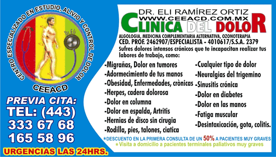Tratamiento del Dolor CIAAD. Dr. Eli Ramírez Ortiz Morelia Michoacán México.