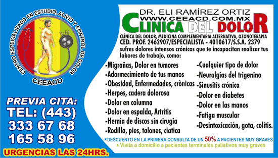 Tratamiento del Dolor. (CIAAD). Dr. Eli Ramírez Ortiz, CIAAD, Morelia Michoacán México.